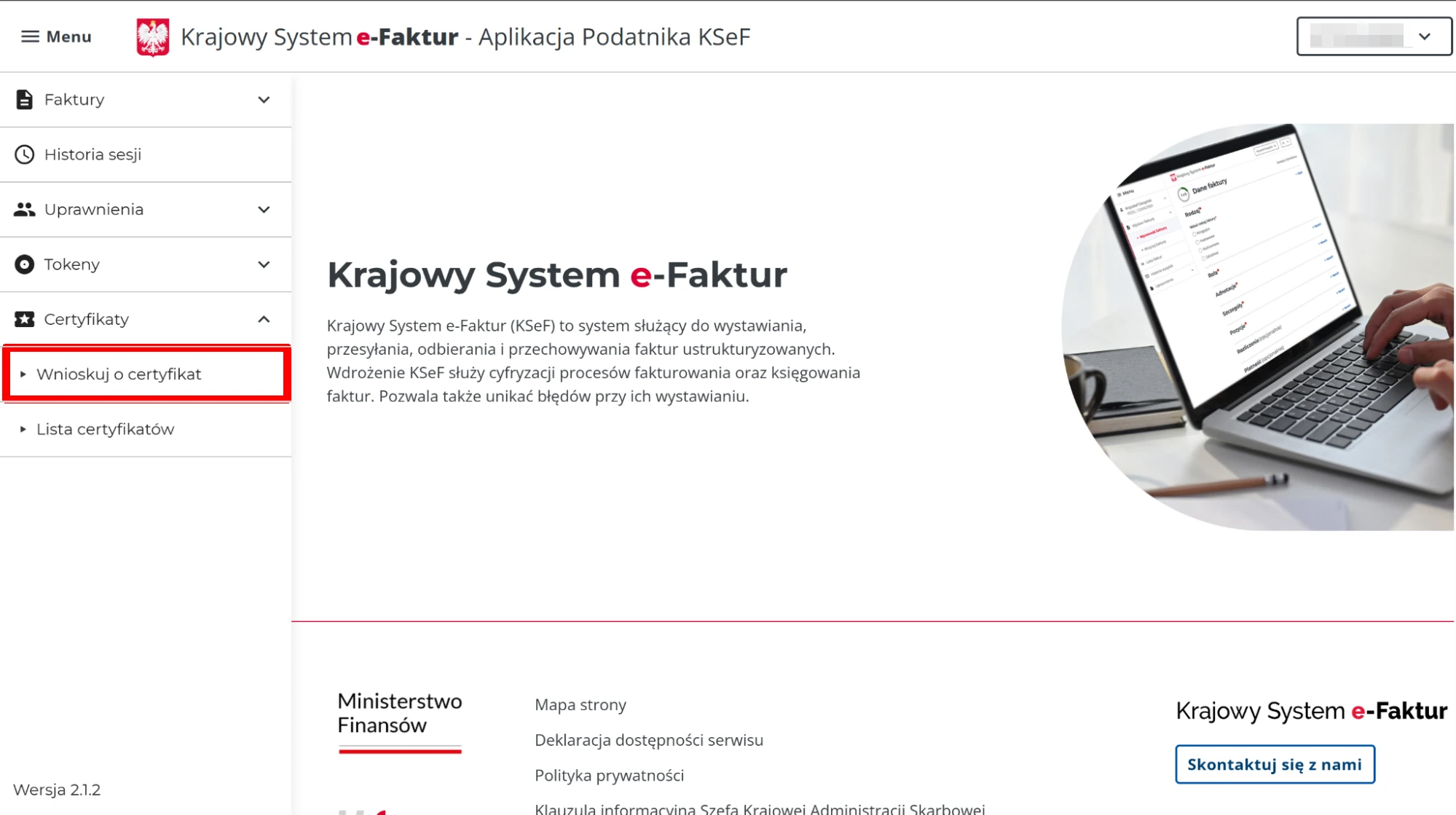 - Zaloguj się do Aplikacji Podatnika KSeF: ap.ksef.mf.gov.pl