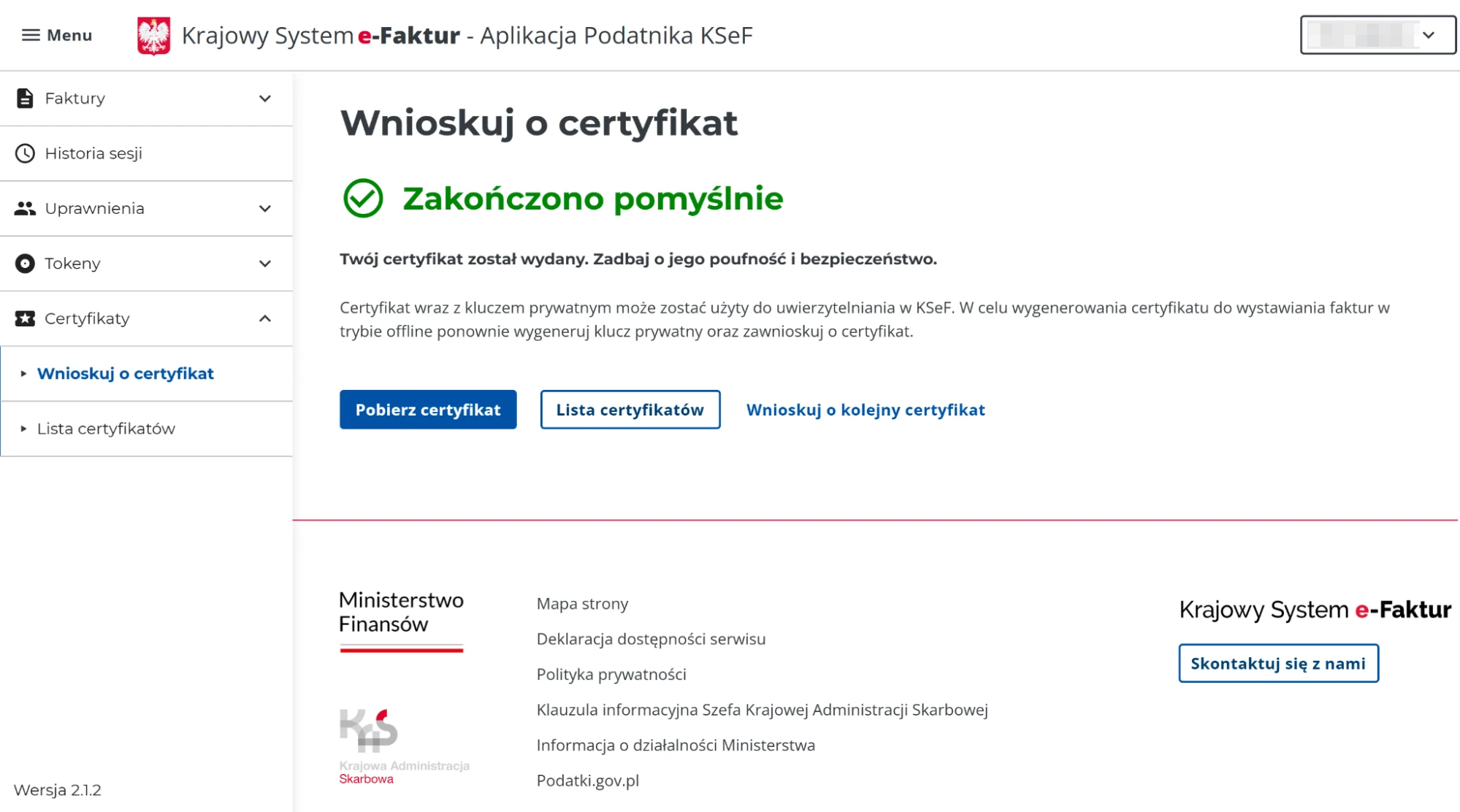 - Odśwież stronę - po pozytywnym wydaniu pobierz certyfikat i zapisz go na komputerze.